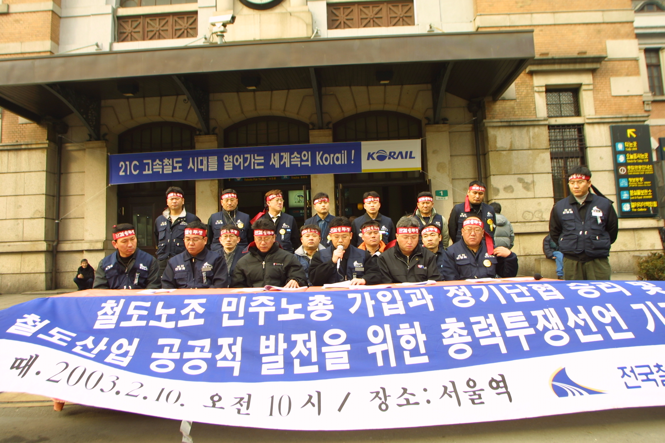 선거관리위원회 긴급회의를 열고 4∼6일 실시하는 ‘상급단체 변경을 위한 조합원 총투표’에 대한 철도청 개입이 심각하다고 판단, 사회단체에 총회 감시를 위한 협조를 요청하기로 했다. 노조는 “철도청이 ‘노정 현안 사항 대책’이라는 문서에 따라 현장 조합원에 대한 교육 및 면담을 진행 중이며, 상급단체를 변경할 경우 철도는 구조조정에 휩싸이고 고속철도는 분리 운영된다는 등 흑색선전과 개입을 하고 있는 것으로 확인됐다”며 철도청에 개입중단을 수차례 요청했다. 그러나 총투표 일정이 다가오면서 철도청의 개입 적발 사례는 더 늘어났다. 이에 조합원의 자주적 의사에 의해 투표가 진행될 수 있도록 양 노총을 비롯해 참여연대, 전농, 민중연대 등 사회 각층에 ‘감시인단 구성’을 요청했다고 그 사유를 밝혔다. 한편 노조는 이날 1일 손학래 철도청장을 노동부에 부당노동행위로 고소했으며, 특별근로감독을 요청했다.