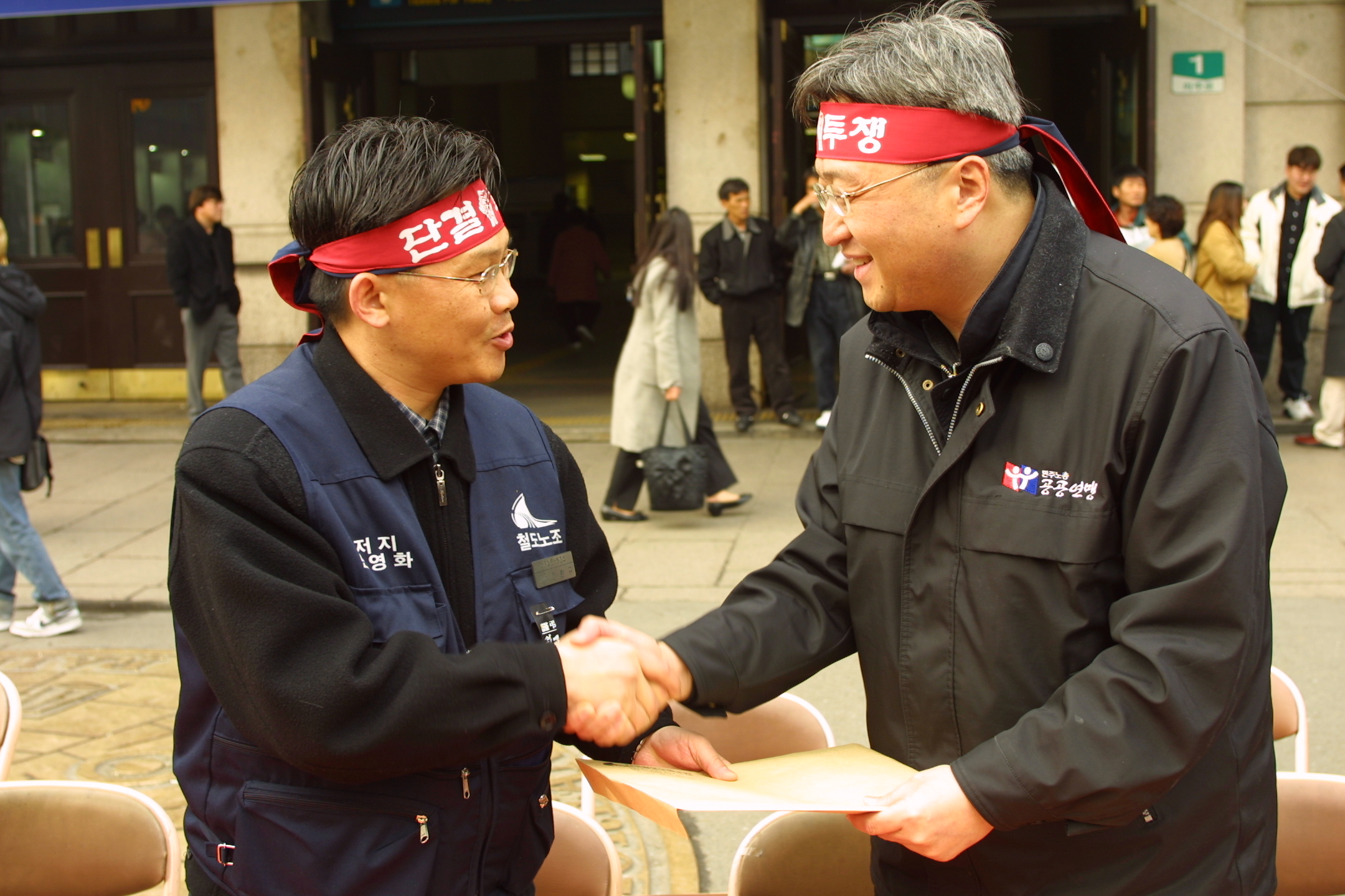 ‘상급단체 변경을 위한 조합원 총투표’를 12월 4∼6일 실시한다고 공고했다. 노조는 위원장 담화문을 발표하여 “민주노총 가입은 투쟁할 연대조직의 총결합을 의미하며, 대정부 교섭력을 강화하고, 민주노조의 새로운 역사를 향해 나가는 것”이라고 밝혔다. 천환규 위원장은 ‘상급단체 변경 압도적 가결과 정기단협 승리’를 내걸고 11월 2일까지 전국 현장 순회를 진행했다.